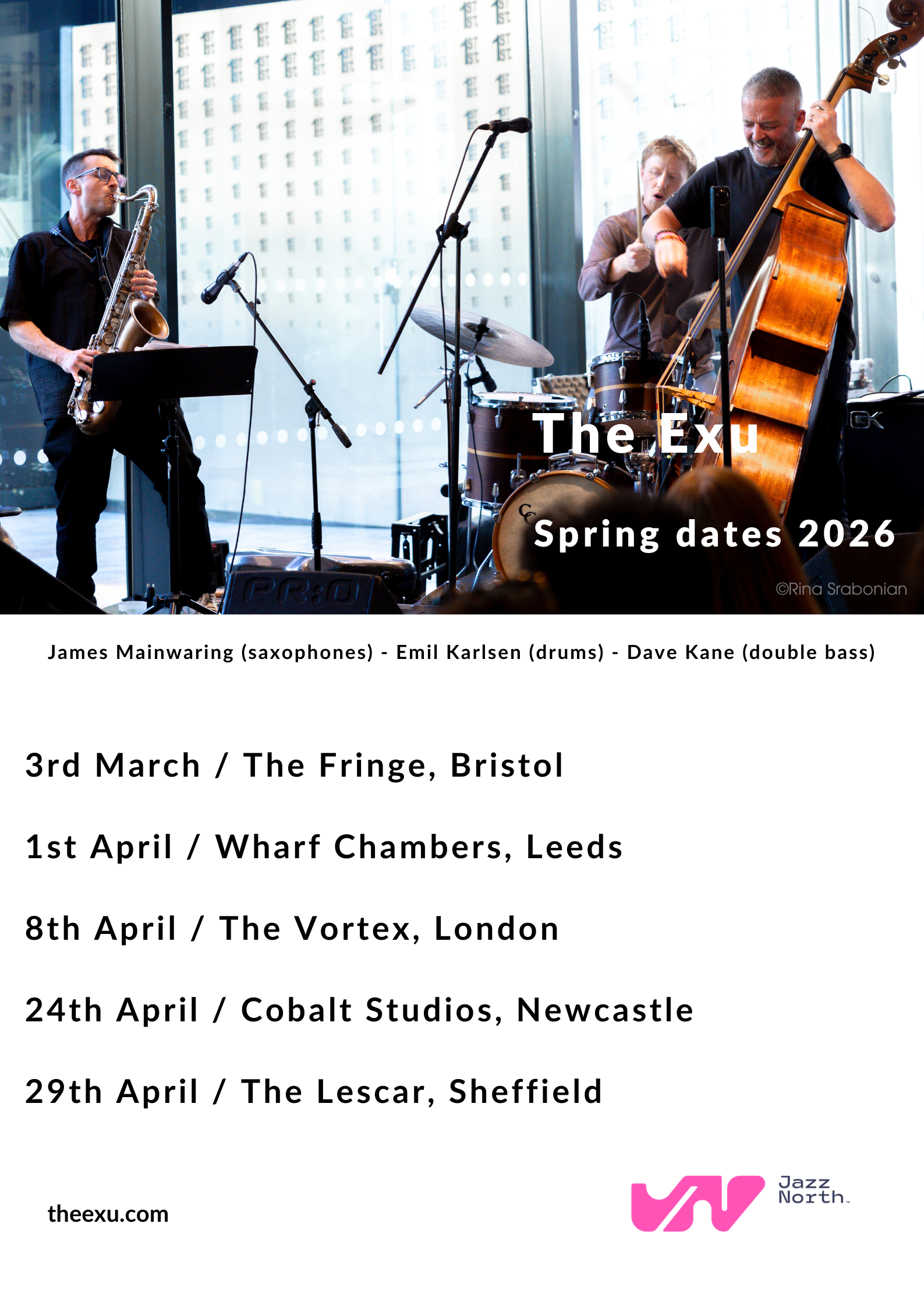 The Exu will be touring the UK this spring. Check out our debut album on Discus Music and come see us.